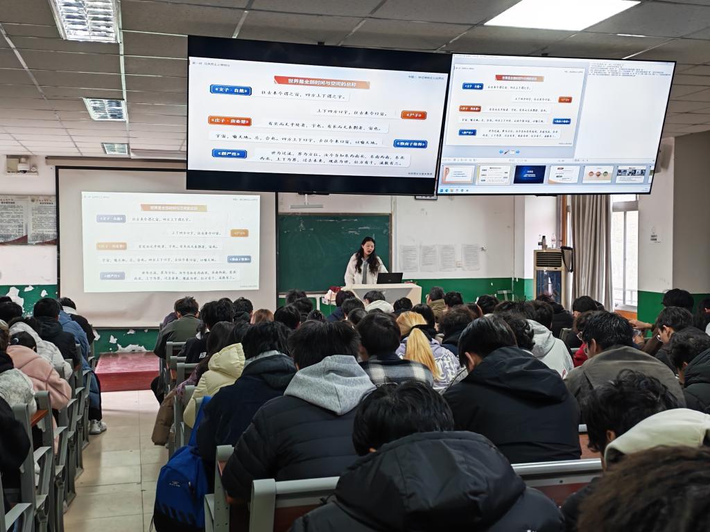 何佳欢同学以“马克思主义唯物论”为题,为本科生讲授《马克思主义基本原理》第一章第一节的内容。她系统梳理了从神话、宗教到哲学的世界观演化轨迹,从“思维和存在的关系问题”这一哲学基本问题切入,阐释了唯物主义与唯心主义两大哲学派别。在此基础上,她结合马克思《关于费尔巴哈的提纲》中的实践观点,深入分析了旧唯物主义“只是从客体的或者直观的形式去理解世界”的根本缺陷,阐释了马克思以实践为基础的新唯物主义对旧哲学的双重超越。通过对列宁关于“物质是标志客观实在的哲学范畴”经典定义的解析,帮助学生准确把握马克思主义物质观的理论特质,并围绕物质与运动、时间与空间的关系展开论述,引导学生在理论层面深入理解世界的物质性及其发展规律。