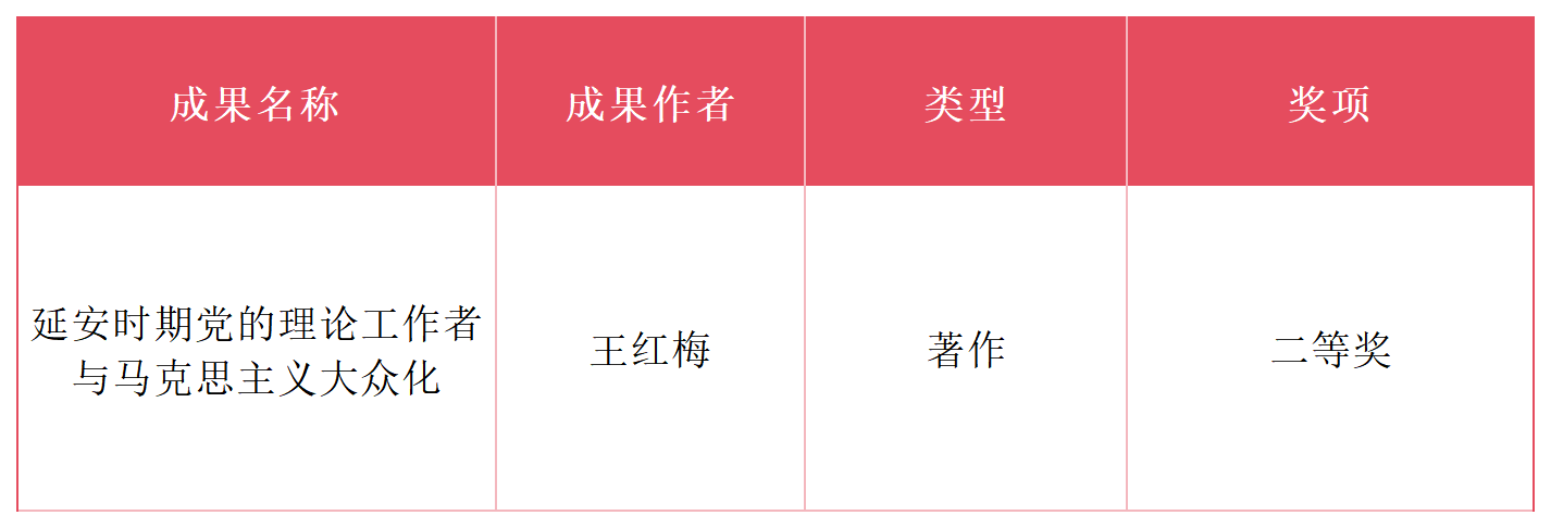 近日,陕西省人民政府发布《关于表彰第十七次哲学社会科学优秀成果的通报》,7790必发集团王红梅教授独著的《延安时期党的理论工作者与马克思主义大众化》荣获陕西省第十七次哲学社会科学优秀成果奖著作类二等奖。