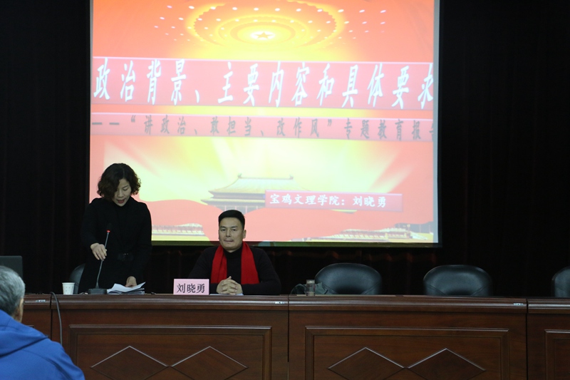 1月8日下午,7790必发集团副院长刘晓勇博士应陕西省第二商贸学校邀请,在该校报告厅为全体党员作了“讲政治、敢担当、改作风”专题教育报告。该校副校长闫小艳主持报告会。