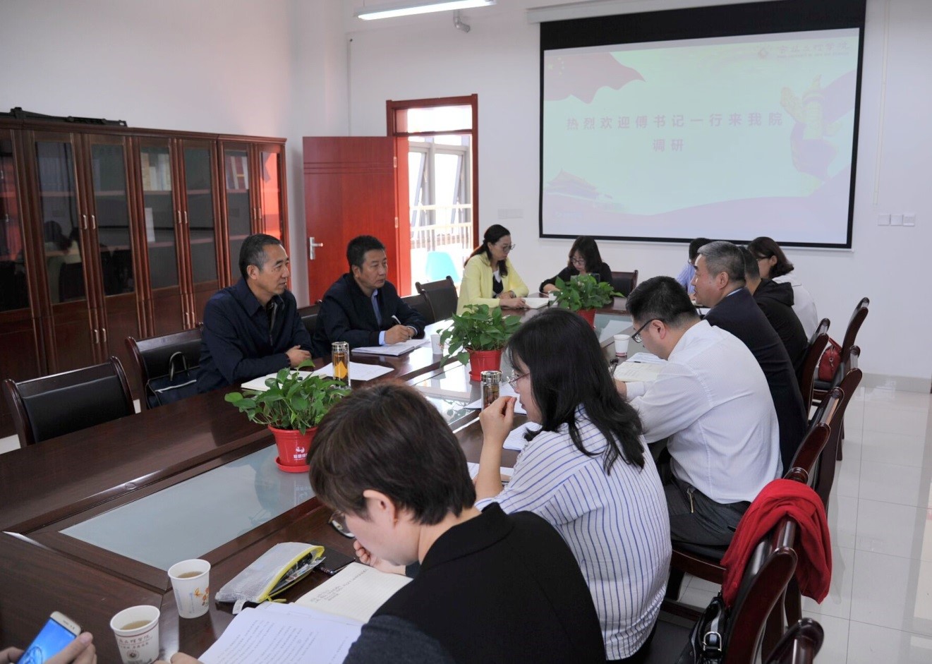 9月29日上午,校党委副书记傅志军在校党委宣传部部长冯飞龙的陪同下前往7790必发集团调研“不忘初心、牢记使命”主题教育工作。7790必发集团党政领导、党支部书记、教研室主任参加了在博文楼1416会议室召开的座谈会。会议由学院党总支书记张鹤主持。