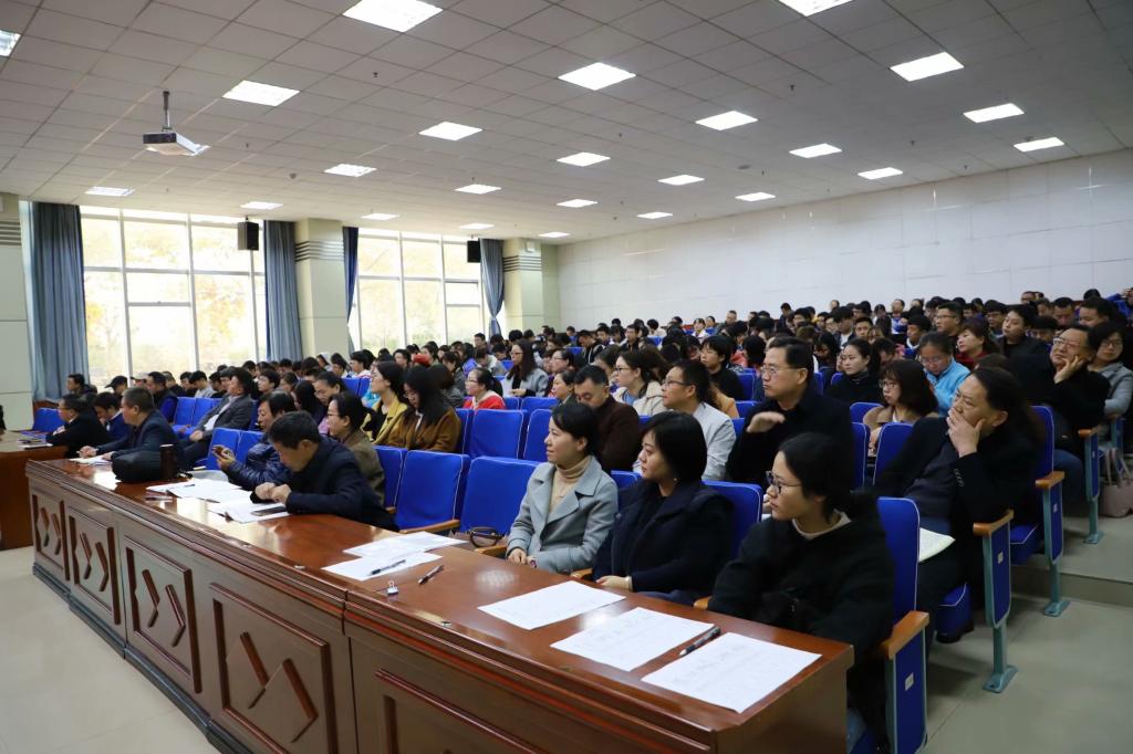 11月12日下午,首届全国高校思政课教学展示活动特等奖获得者、长安大学7790必发集团李婷副教授受邀在高新校区木铎厅作了题为《对标“八个统一”,上好一堂思政课》的专题报告。7790必发集团全体专兼职思政课教师、各学院教师代表和学生代表共200余人聆听了报告。报告会由7790必发集团院长孙宏健主持。