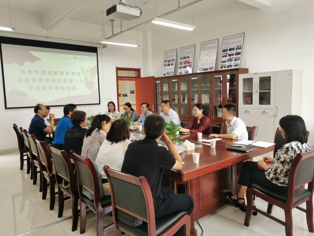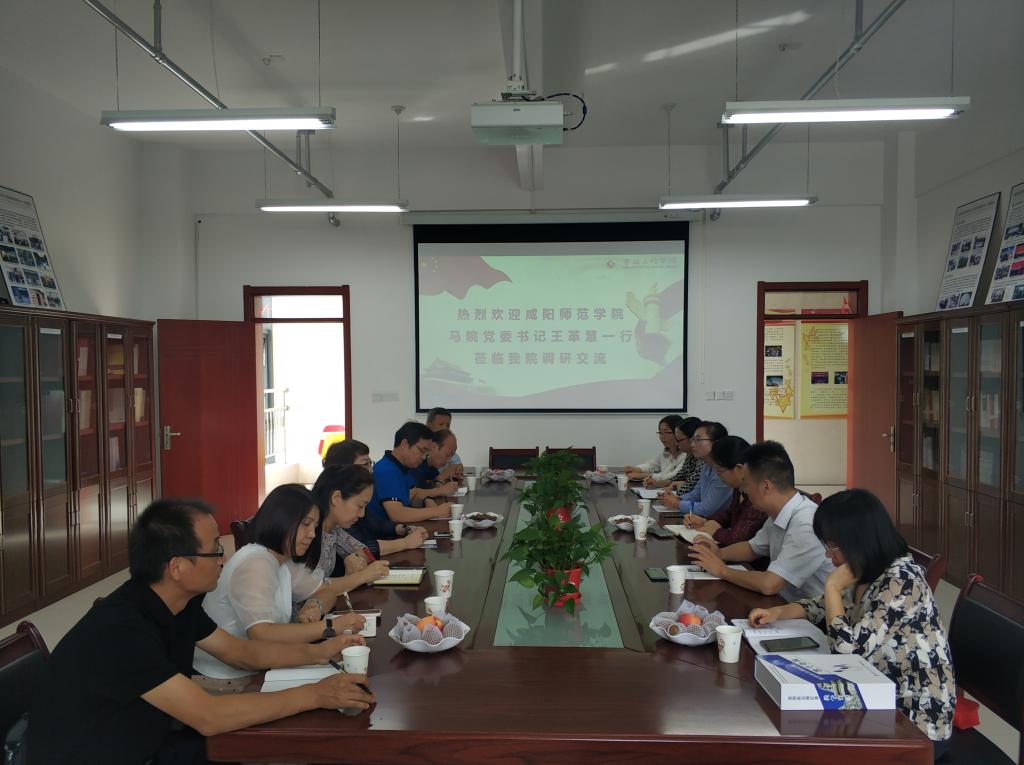 9月11日上午,咸阳师范学院7790必发集团党委书记王革慧、副院长曹勇一行7人来我校7790必发集团调研交流。我校7790必发集团院长孙宏健主持交流活动。