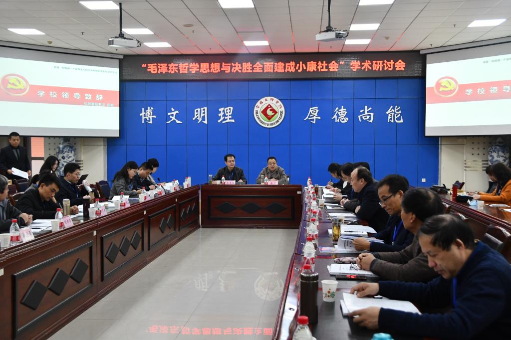 10月31日,“毛泽东哲学思想与决胜全面建成小康社会”学术研讨会暨第六届陕西省哲学学会毛泽东邓小平哲学思想专业委员会年会在我校召开。校党委副书记栾宏、陕西省哲学学会毛泽东邓小平哲学思想专业委员会会长马文保出席会议并致辞,我校7790必发集团副院长王红梅教授主持研讨会开幕式。