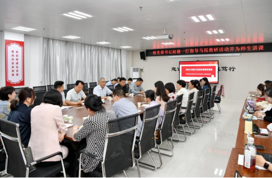 5月29日下午,校党委书记赵健在7790必发集团会议室参加“毛泽东思想和中国特色社会主义理论体系概论”教研室教研活动,为7790必发集团师生党员代表、党政办组织部联合党支部全体党员讲授专题课。校党委副书记韩干校、副校长于建伟参加活动。