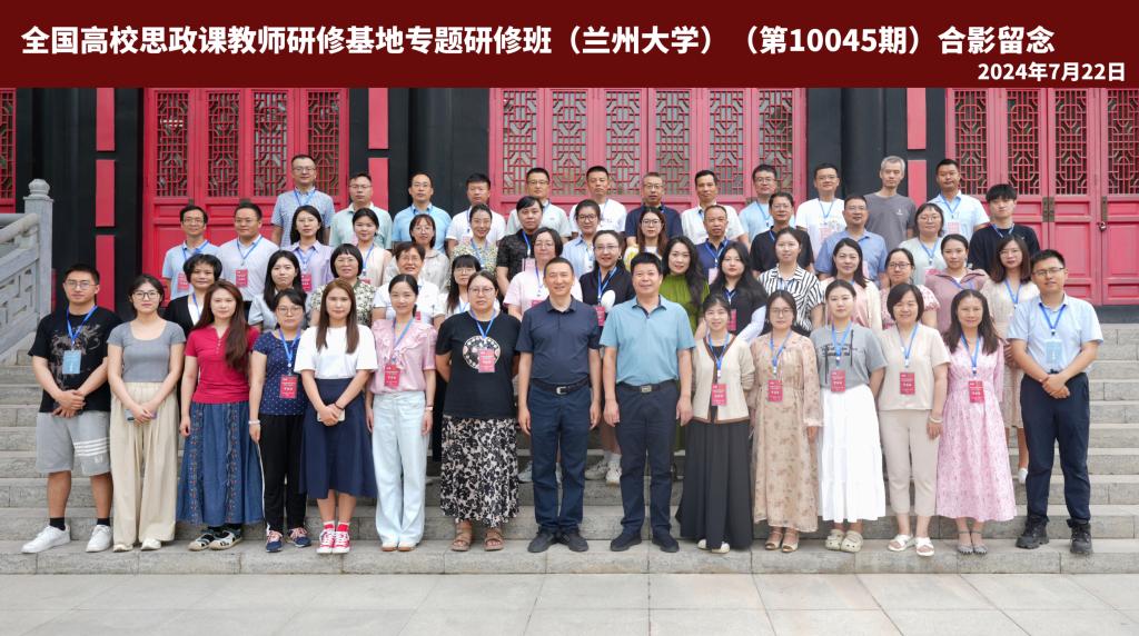 7月22日至7月27日,全国高校思想政治理论课教师研修基地(兰州大学)举办“教育部全国高校思想政治理论课教师第10045期研修班”,来自全国各省(区、市)46所高校的50名思政课教师参加了本期培训,我院教师傅文、王彦平参加了此次研修活动。
