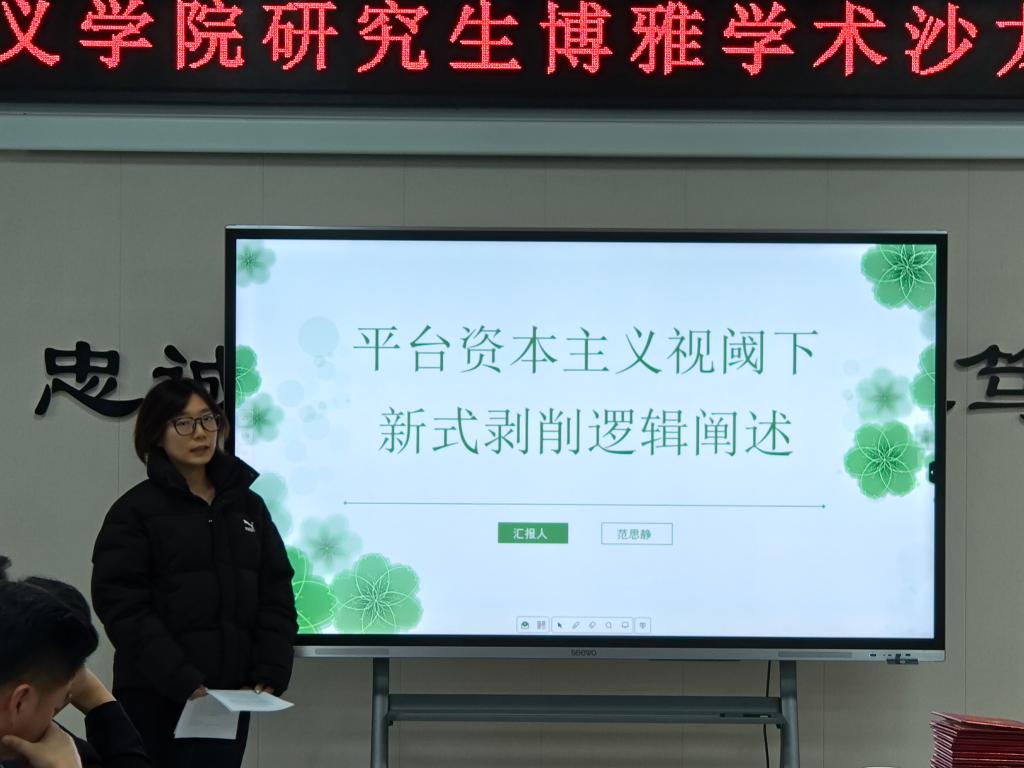 学术沙龙环节,硕士研究生李佳欣、王怡彤、陈任思遹、范思静、周艳、刘诗婷、杨淼、杨佳鑫、李长宇、张根豪、刘昊、胡晓玲依次上台就论文成果作学术汇报。硕士生导师代表韩静、米文科、王红梅在认真聆听同学们的汇报后,逐一进行了细致点评,高度肯定了同学们汇报的选题新颖性、准备充分度以及表述清晰化等方面优势,同时也指出了研究中存在的一些问题,如问题意识不够强烈、创新效果不够显著、学理性分析有待加强等。这些中肯的点评和建议为同学们今后的学术研究指明了方向,也激发了他们更加深入地思考和探索的热情。最后,导师代表向汇报同学颁发了荣誉证书。