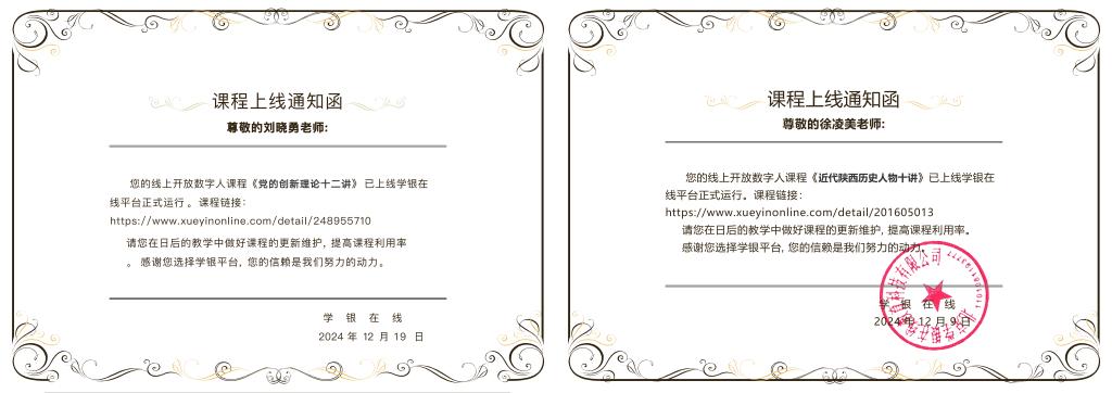 近日,我校首批线上开放数字人课程《党的创新理论十二讲》《近代陕西历史人物十讲》如期建成并在学银在线平台上线运行,标志着我校在构建人工智能赋能新文科与一流本科教育教学改革新生态方面迈出新的一步。