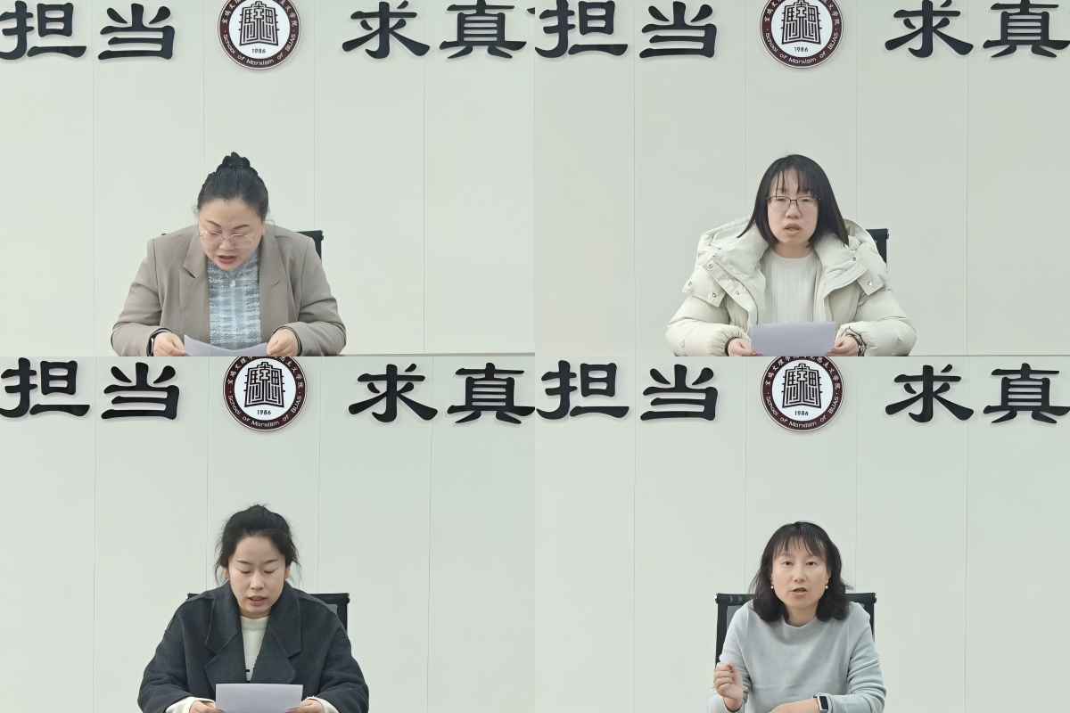马院领导班子、科级干部、教研室负责人、基层党支部和工会负责人、智库和科研机构负责人、教学督导组负责人依次进行上台践诺。其余一线教师进行了书面践诺。