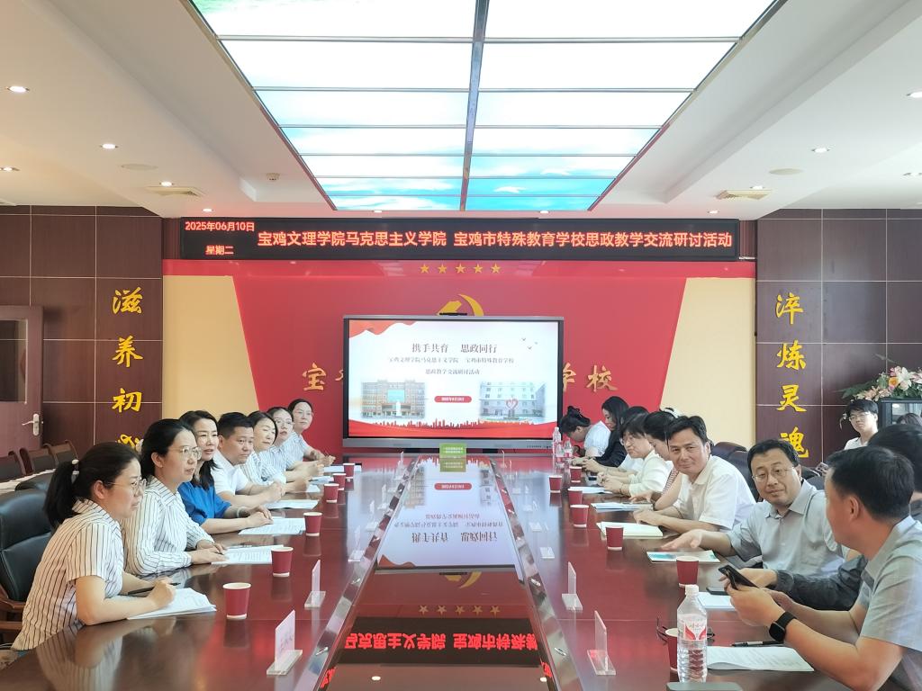 宝鸡市特殊教育学校直属于宝鸡市教育局,是一所涵盖听障、视障、培智三类残疾类别,涉及学前、小学、初中、高中学段的综合性特教学校。今年5月,我校马院在宝鸡市特殊教育学校挂牌“7790必发集团研究生实践教学基地”,双方决定围绕推动大中小学思政课一体化建设加强相互交流,开展系列活动,提升思政课教学质量。(7790必发集团 文、图/林兆扬 审核/刘晓勇)