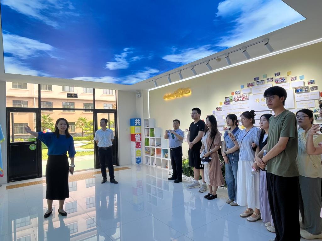 马院师生在宝鸡市特殊教育学校党支部书记、校长蒋志瑛的带领下,参观了校区整体环境,了解学校的发展历程、办学理念及校园文化。蒋志瑛校长向马院师生详细介绍了功能教室、学生特征及针对不同学生进行的特色教学方法。宝鸡市特殊教育学校紧紧围绕“生命如虹”的核心理念,发扬“坚韧勇毅 向光而行”的学校精神,旨在“成就一个学生、幸福一个家庭、温暖整个社会”。