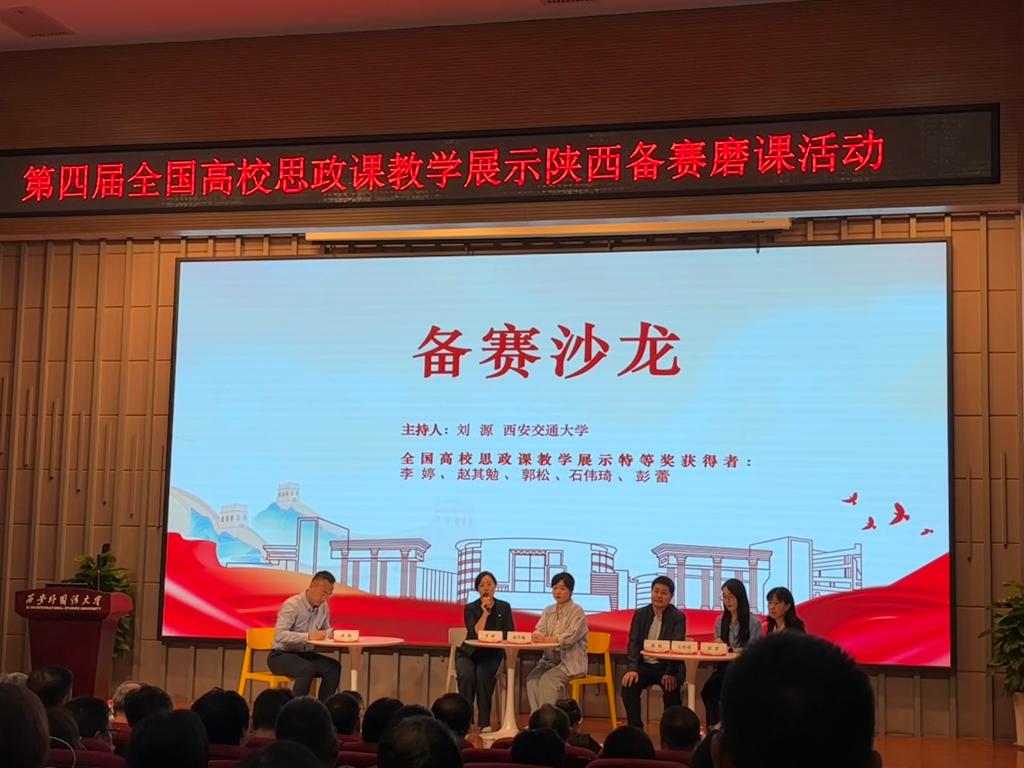 2025年9月13日,由陕西省委教育工委主办、西安外国语大学承办的第四届全国高校思政课教学展示活动陕西备赛磨课活动在西安外国语大学长安校区举办,我院院长刘晓勇、全国高校思想政治理论课教学展示参赛教师韩静、教师蒋文晶、郑琪参加了本次活动。