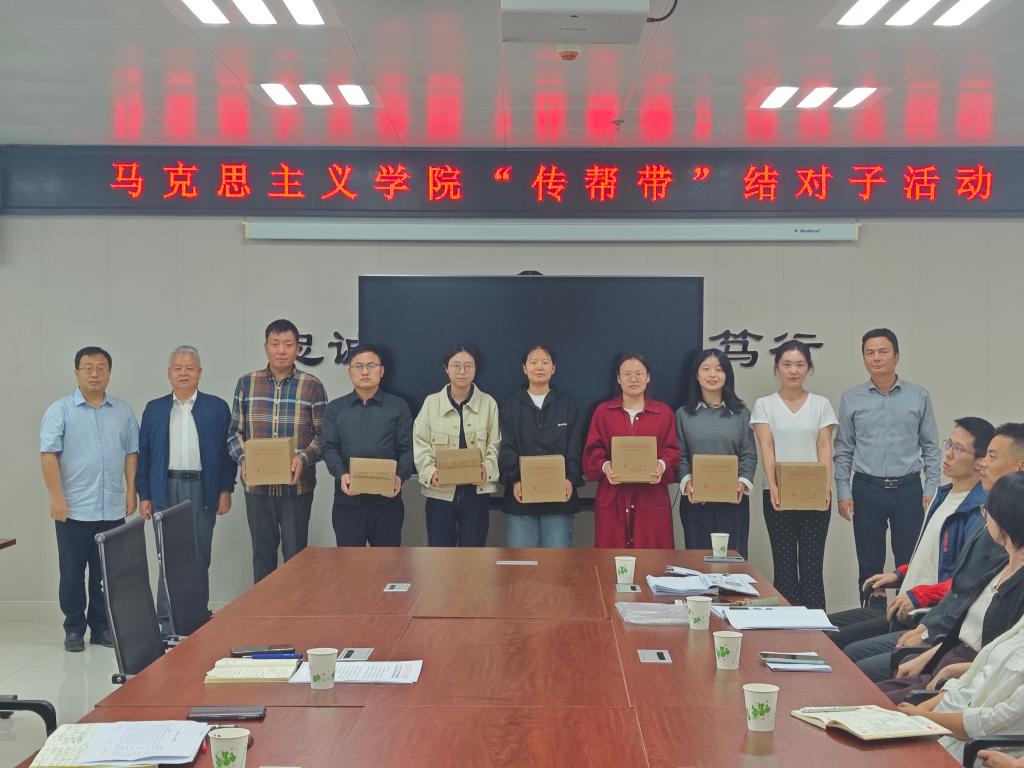 活动伊始,院长刘晓勇公布了指导教师名单,学院领导班子向新进教师赠送《马克思恩格斯选集》,指导教师为新进教师赠送《师说:新时代思政课》。随后,新进教师一一表态发言,表达了虚心求教,学以致用,争取成为一名优秀青年教师的决心。