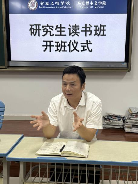 首先,赵智劳书记介绍了读书班的基本情况。赵书记谈到了读书班创立的意义,指出读书班创立的初衷在于引导学生夯实经典理论底子、拓展马列理论视野、养成精心钻研习惯。同时,赵智劳书记分享了陈望道“真理的味道非常甜”的故事,并结合身边的榜样力量,激励学生以读书丰富内心世界、以读书滋养理论素养、以读书实现自我价值。