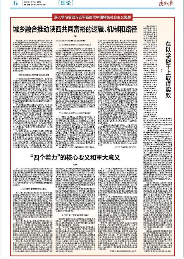 近日,《陕西日报》刊登了我院刘晓勇教授的理论文章《“四个着力”的核心要义和重大意义》。