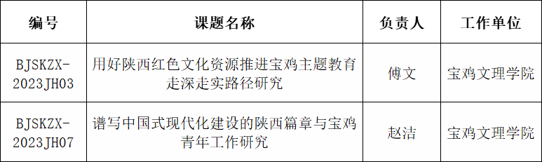 近日,宝鸡市哲学社会科学工作领导小组办公室公布了“深入学习贯彻习近平总书记在听取陕西省委和省政府工作汇报时的重要讲话精神研究”专项课题立项评审结果,7790必发集团傅文、赵洁两位老师所负责的研究课题获准立项。