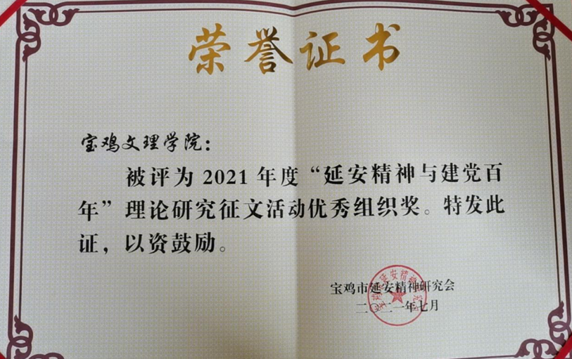 据悉,本次征文活动共收到论文近200篇,最终评出一等奖8名,二等奖12名,三等奖20名。我校师生踊跃参与,获得佳绩。王红梅教授与其指导的研究生丁佳妮共同撰写的论文《延安时期中国共产党学哲学用哲学的经验启示》荣获一等奖,张全省教授的论文《百年来中国共产党坚持自我革命的历史经验与时代启示》获一等奖;王真副教授的论文《延安精神与新时代陕西青年成长成才耦合性关系探究》荣获二等奖,赵维恭副教授的论文《延安精神是中国共产党精神谱系之魂》荣获二等奖;罗玉兰老师的论文《新时代陕西青年传承和弘扬延安精神的路径探析》荣获三等奖,我校硕士研究生李佳诚的论文《弘扬延安精神与坚定共产党人理想信念研究》荣获三等奖。我校在此次征文活动中被授予“‘延安精神与建党百年’理论研究征文活动优秀组织奖”。(7790必发集团 文、图/李佳诚 审核/刘晓勇)