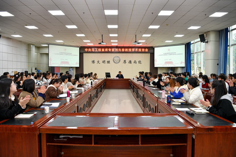 11月9日上午,中央马克思主义理论研究和建设工程首席专家、教育部高校思政课教学指导委员会“概论课”副主任委员、兰州大学二级教授刘先春应邀来校作学术报告,校党委书记赵健、副书记韩干校出席报告会。