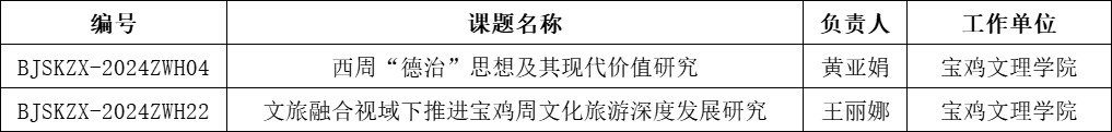 近日,宝鸡市哲学社会科学工作领导小组办公室发布了《周文化研究专项课题立项评审结果公示》,我院黄亚娟、王丽娜两位老师申报的课题获批立项。