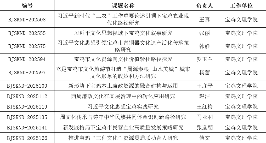 我院11位教师获批2025年宝鸡市哲学社会科学年度课题