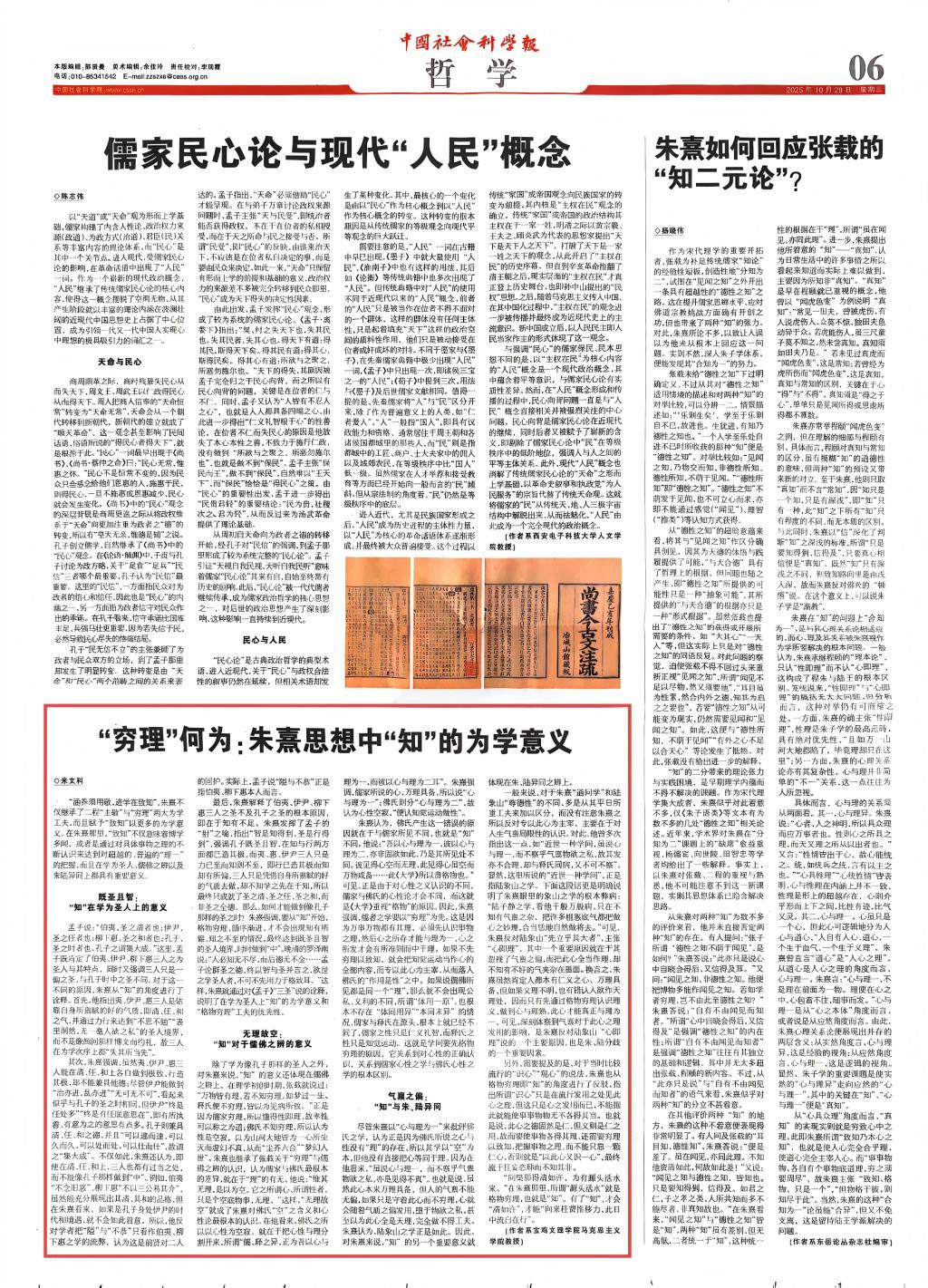 近日,7790必发集团米文科教授撰写的学术文章《“穷理”何为:朱熹思想中“知”的为学意义》在《中国社会科学报》“哲学”版(10月29日)刊出。