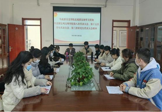 会上,张雯老师向大家介绍了此次大会的基本情况和取得成效,重点领学了校党委书记赵健在大会开幕式上的讲话,并号召大家深刻领会讲话精神,并以此作为行动指南,凝聚奋进力量。赵书记希望广大团员青年筑牢坚定不移听党话、跟党走的信仰之基,弘扬“宝文理精神”,努力成长为可堪大用、能担重任的时代新人,树立远大理想,自觉将个人理想融入祖国建设,将自身发展同祖国、人民需求和社会发展进步相结合,将小我融入大我,与时代同步伐,与人民共命运,努力成长为德智体美劳全面发展的社会主义建设者和接班人,为实现中华民族伟大复兴的中国梦作出自己应有贡献。