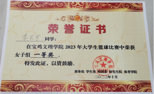 近日,学校2023年大学生篮球比赛落下帷幕,我院2023级硕士研究生李长宇代表研究生院参加比赛并荣获女子组一等奖。为取得佳绩,她利用课余时间积极训练,在赛场上全力奔跑、顽强拼搏、与队友们团结协作,淋漓尽致地展现出矫健身姿和卓越风采。