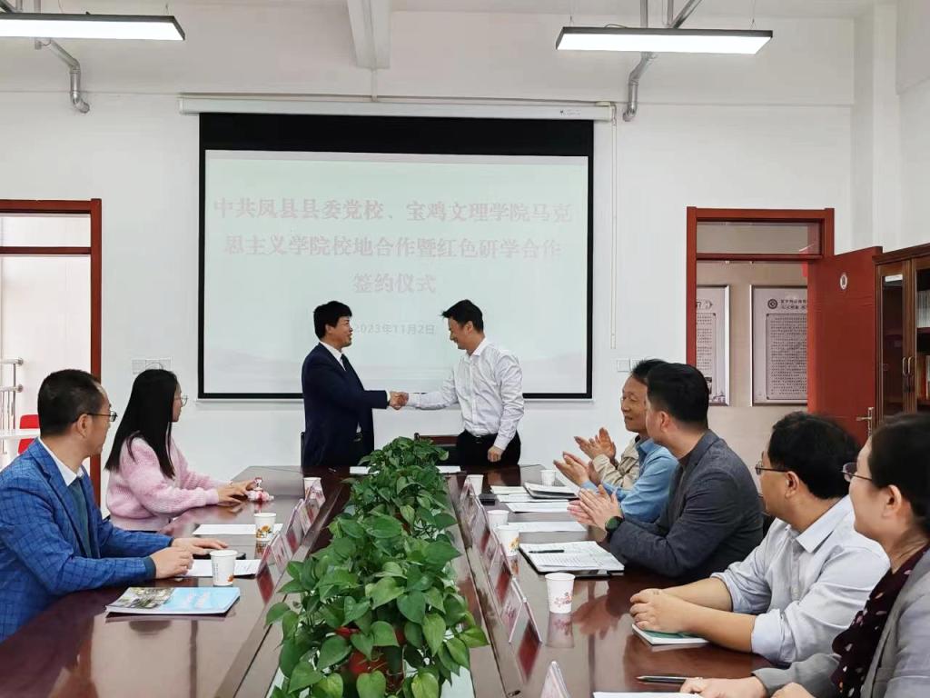 于建伟回顾了学校与凤县县委党校前期开展交流合作的历程及成效,希望双方以此次签约为新起点,继续加强联系,深挖合作领域、创新合作方式,不断提升校地合作层次和水平,努力开创校地合作新篇章。毛忠生介绍了近年来党校充分发挥凤县和周边红色资源优势开展干部培训工作取得的成效,表达了今后在加强师资建设、整合科研力量、提升工作影响力等方面合作意愿。7790必发集团党总支书记张选朝介绍了学院近年来发展总体情况,就干部培训及社会实践活动开展情况作了说明,希望双方在课程建设、理论研究、政府智库等方面取得实质性合作成效。