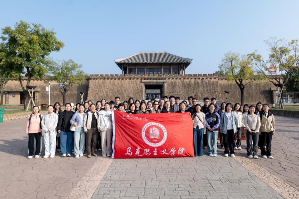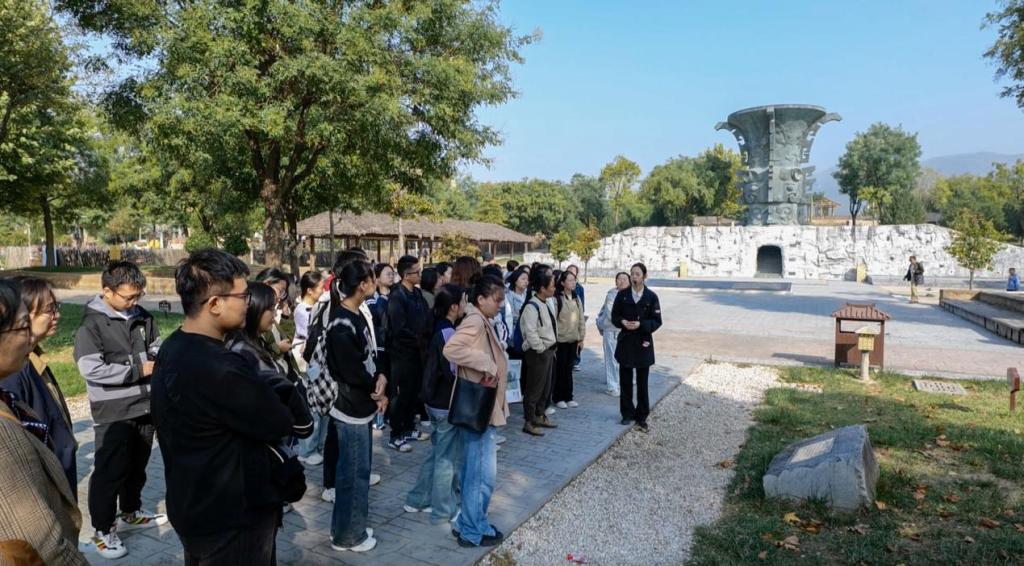 为弘扬中华优秀传统文化,坚定文化自信,我院社会实践教研室于10月13日组织文传院、美术学院、化工院、地环院、数信院、机械工程学院、历史文化与旅游学院、体育学院等学院部分本科生前往宝鸡市岐山县,开展以“寻觅周人印记 传承礼乐文明”为主题的思政课社会实践活动。师生们通过参观明堂、中轴文化景观带、周文化博物馆、周公庙,以及现场举行的《颂周公》、学周礼、制作青铜器等教学活动,与中华优秀传统文化进行近距离接触,感受中华礼乐文明的魅力。