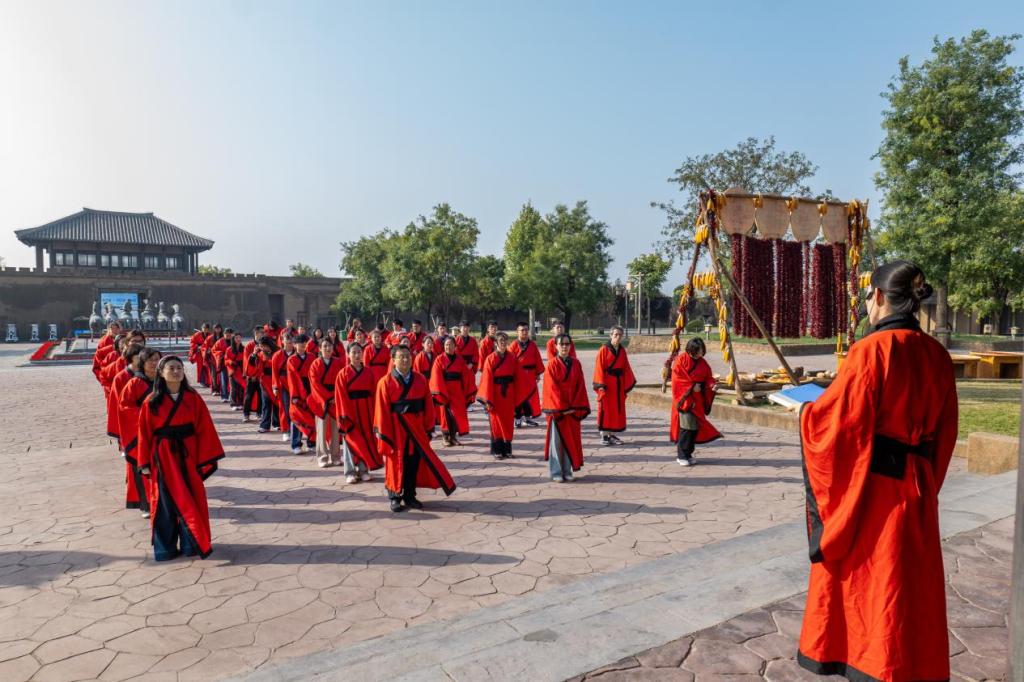 “不学礼,无以立。”礼仪是中国传统文化的重要组成部分,同学们在讲解老师的带领下扶手高揖,颂周公、学周礼,并向同行的老师行礼,以示尊师重学,传承中华五千年优秀传统文化精髓。